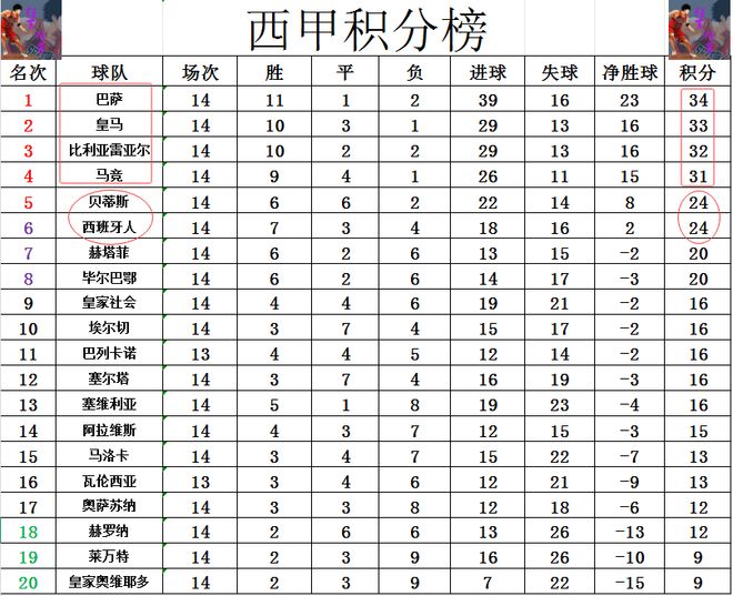 积分榜方面,皇马连着3场都无力赢弱旅丢分,不少球迷调侃,皇马对巴萨是真爱啊,愣是从领先5分到落后1分“让出”榜首。比利亚雷亚尔今天又赢球,这样的话他们再超过马竞1分重回前3,西甲前4竞争很激烈,巴萨,皇马,比利亚雷亚尔,马竞依次1分之差。第5的争夺同样激烈,贝蒂斯和西班牙人齐齐赢球,两队还是积分一样,贝蒂斯净胜球优势位列第5。