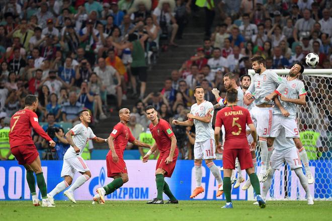 2018年6月15日,世界杯小组赛B组首轮,葡萄牙3-3西班牙。第87分钟,C罗直接任意球破门上演帽子戏法,帮助葡萄牙3-3绝平。此球观赏度极高且价值连城,被解说员盛赞为“翩若惊鸿,宛若游龙”。青春之名