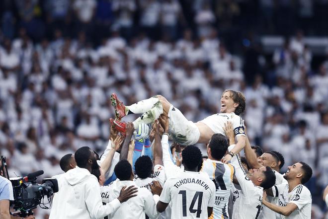 2025年5月24日,西甲第38轮,皇马2-0皇家社会,莫德里奇完成了在伯纳乌主场的告别战,皇马球员将魔笛高高举起。在13年皇马生涯的597场比赛里,魔笛赢得了28座奖杯,成为皇马队史冠军最多的球员。投票环节懂球帝12周年120大瞬间评选规则时间范围120大瞬间选择自2013年12月至2025年11月。