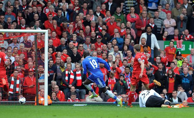 2014年4月27日,英超第36轮,利物浦主场0-2不敌切尔西。上半场最后时刻,杰拉德在无对抗状态下接球时突然滑倒,登巴巴笑纳大礼。利物浦失去争冠主动权,杰拉德也留下了没有英超冠军的遗憾。黑金