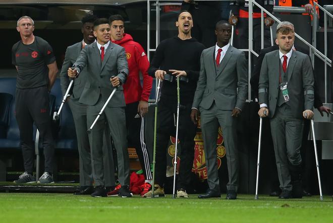 2017年5月24日,欧联杯决赛,穆里尼奥率领曼联2-0战胜阿贾克斯夺得冠军。本场比赛,曼联队的伊布、卢克-肖、罗霍、拜利等球员均拄着拐杖参与颁奖,“拐杖联”也代表着当时那支曼联的精神与信念。翩若惊鸿