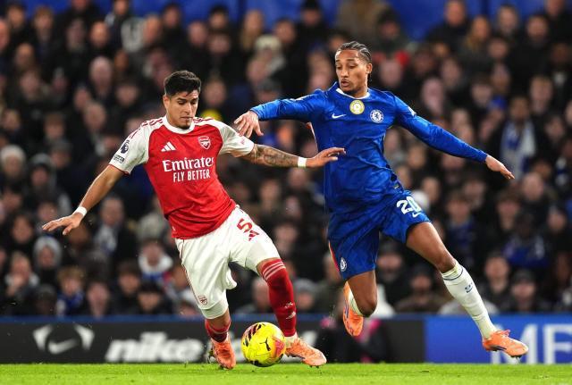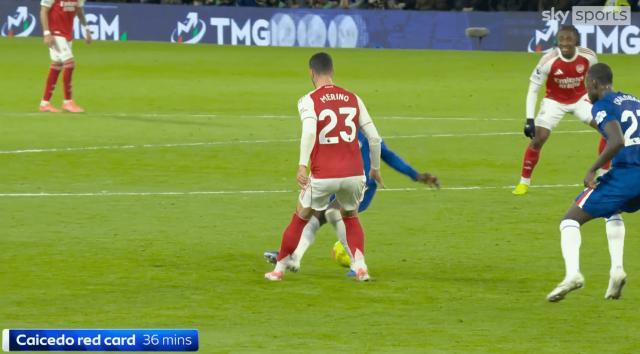 所幸枪手的整体补防意识不错,关键时刻有右后卫廷伯救驾,再加上埃斯特旺立功心切把一次绝好机会轰上了看台,阿森纳并没有在人数均等的时段被攻破城池。但警钟也已经敲响了,并且枪手在下半场还是丢掉了一球。当查洛巴回头望月将里斯·詹姆斯开出的角球顶进,我们不能说两名中卫有什么失误,但加布里埃尔和萨利巴的防空能力必然让人想念。而据赛后阿尔特塔透露,在国家队受伤的加布还需要“数周”来恢复他的内收肌。萨利巴的情况则不太明朗,他在上周六的训练中受伤,本周一会接受更详细的检查。假如萨利巴不能尽快复出,后防线的慌乱情况还要继续的话,那对于已经进入年末繁忙赛程的阿森纳而言肯定不是好消息。接下来是连续的一周双赛,除了夹杂了一场欧冠客场对布鲁日以及一场联赛杯对水晶宫,12月的英超对手依次是布伦特福德、维拉、狼、埃弗顿、布莱顿和再遇维拉,没有豪门对手,但难缠的也不少,要想顺利收割分数就不能后防露出太多破绽。需要注意的是,对垒切尔西开场劣势,主力中卫的缺阵是个很显眼的因素,但严格来说枪手主要是输在了中前场,尤其是中场在蓝军的凶悍围猎之下有点支离破碎。赖斯依然前冲后抢很努力,但没了此前对热刺和拜仁时那种所向披靡的感觉。苏维门迪则身体对抗原本就不是强项,此役对禁区前沿的保护也有所缺失。还有连续两场参与破门的埃泽,先是在凯塞多的看守下施展不开,然后面对詹姆斯和恩佐的备用后腰组合也不占优势。就这一点来看,如果不是凯塞多亮鞋底蹬踏梅里诺,第38分钟就被红牌罚下,阿森纳还真有可能最终被切尔西碾压。当然,蓝军此役把身体对抗强度拉得很高,遭遇减员好像也算不上特别意外。该队一直存在“纪律问题”,上赛季就是英超染黄次数最多的俱乐部(99张),而凯塞多的红牌则是他们本赛季英超的第三张。