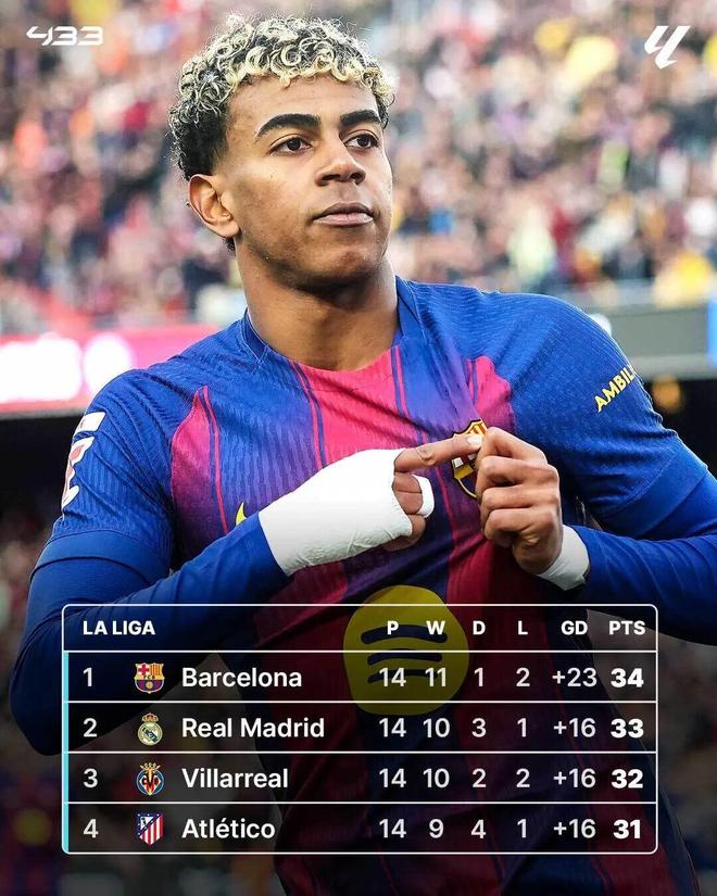 不仅如此,三连平之后,皇马也丢掉了西甲榜首的位置,被巴萨反超登顶。废了!30场0球皇马客场1-1战平赫罗纳,此役,银河战舰仅仅依靠姆巴佩打进一记点球,才避免在客场失利。皇马本赛季的锋线群发挥并不出色,除了打进23球的姆巴佩,其余球员的进球数屈指可数。