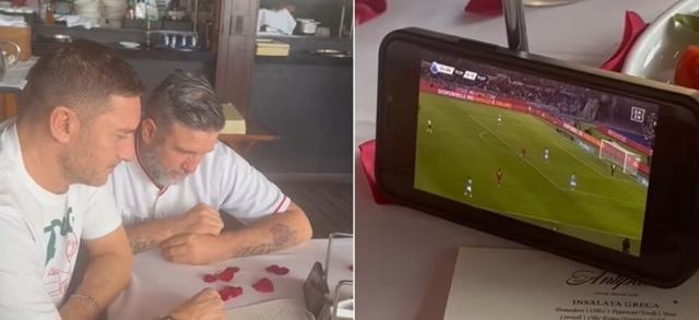 远在迈阿密心系罗马,托蒂和坎德拉用手机观看老东家焦点大战