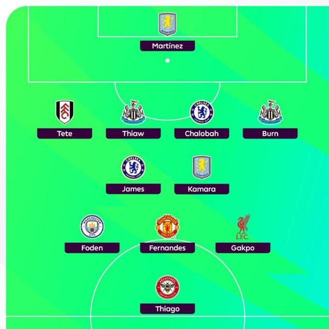 希勒评英超第13轮最佳阵容门将:达米安-马丁内斯(维拉)后卫:泰特(富勒姆)、佳夫(纽卡)、查洛巴(切尔西、丹-伯恩(纽卡)中场:里斯-詹姆斯(切尔西)、卡马拉(维拉)、布鲁诺-费尔南德斯(曼联)前锋:福登(曼城)、伊戈尔-蒂亚戈(布伦特福德)、加克波(利物浦)主帅:马雷斯卡(切尔西)【上咪咕独家看英超】