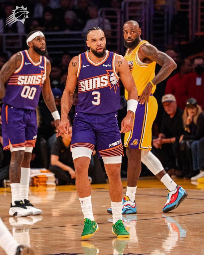 湖人队,里夫斯12中6得到16分4板3助,出现了5次失误。克内克特7中5得到13分4板1助、艾顿8中6贡献12分9板1助、海斯6分2板、克莱伯5分3板2助、文森特6中1,三分球4中1得到3分2板、史密斯3分1助、拉拉维亚2分2板1助、八村塁0分1板、布朗尼0分1助。湖人爆冷完败太阳此战之前,紫金军团高居西部第2,而太阳排名第7。菲尼克斯落后对手多达5个排位、4个胜场差。在多达3人缺战的情况下,太阳在首节打完之时,还折损了队内核心德文布克,这导致菲尼克斯的实力更是被严重削弱了。在人员不整、实力远逊于湖人的情况下,菲尼克斯上演了以弱胜强、以下克上、大爆冷门的好戏。詹姆斯创NBA历史第1神迹湖人队超级巨星勒布朗詹姆斯,在此役表现一般。詹姆斯上场31分钟,10投3中,三分4中1,罚球4中3,贡献了10分3助攻,也有3失误和2次犯规。詹姆斯仅有30%的命中率,并且远投命中率跌至25%。詹姆斯在进攻端球权不多,侵略性不足,效率也不甚理想。詹姆斯在末节独得4分,在轰进远投之后,得分得以上双。此后,湖人尽遣替补,比赛彻底失去了悬念。詹姆斯在场上传球
