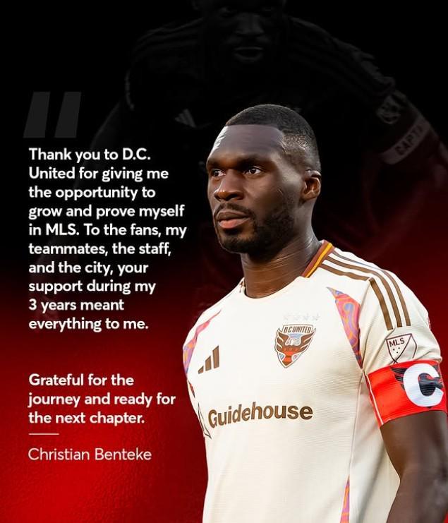 北京时间12月2日,前利物浦前锋本特克在社媒发文告别华盛顿特区联。