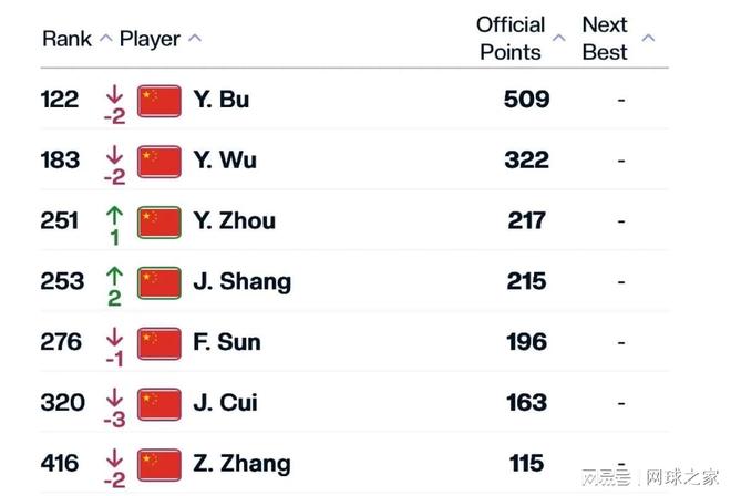 外界有此感慨,皆因去年年底同期,TOP100里还有三位中国男子球员。当时看到张之臻、商竣程和布云朝克特三人的名字时,很多人一度将之视中国男网即将强势崛起的信号。