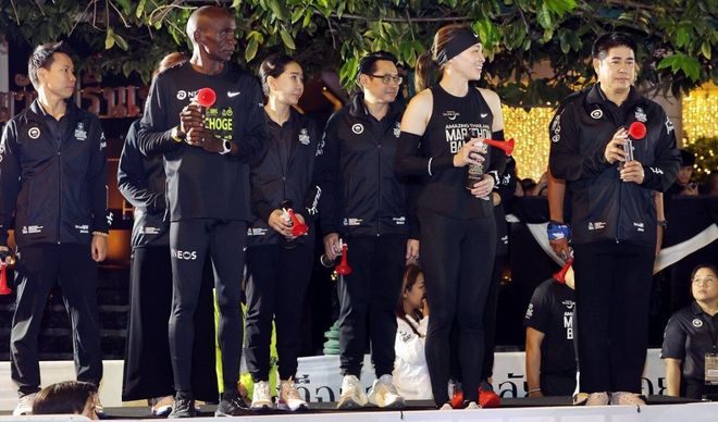 苏提达王后也参与了半程马拉松比赛,与被誉为“马拉松之神”的肯尼亚马拉松运动员埃鲁德·基普乔格(Eliud Kipchoge)一起挑战21.1公里的半程马拉松。她率领一群人从MBK中心百货商店出发,途经曼谷的多个地标性建筑,最终抵达大皇宫前的皇家田广场。苏提达王后跑步途中遇到选手跌倒,还亲自在赛场指挥,稳定现场秩序。比赛最后,苏提达以2小时13分40秒的成绩结束赛程。据了解,这一成绩属于“完赛级”成绩,在大众跑者中属于入门级别。当天晚些时候,苏提达还在典礼上为专业组和业余组的选手们颁奖。