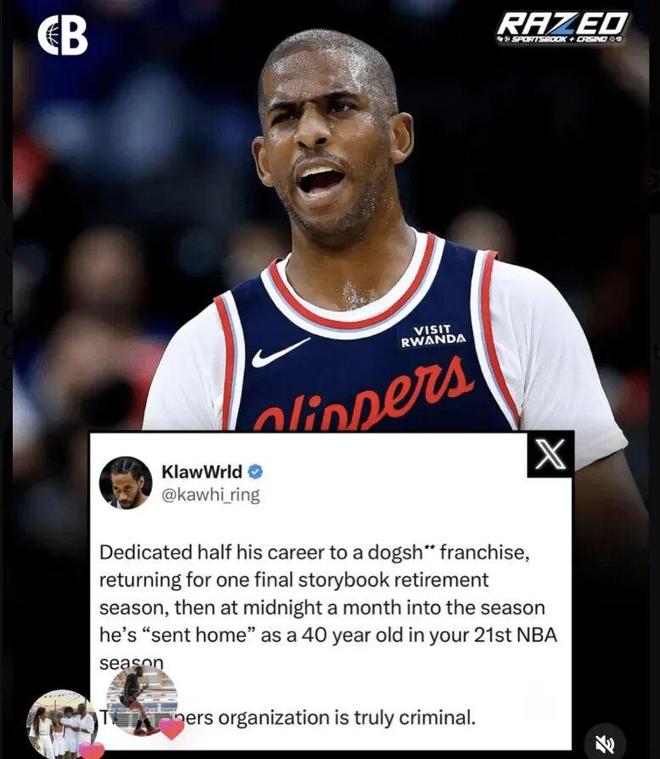 球迷纷纷为保罗鸣不平“所以不让鲈鱼滚蛋反而是裁掉保罗?什么垃圾管理层!”还有自媒体KlawWrld怒喷快船:“他将职业生涯的一半献给了一支糟糕透顶的球队,本为书写最后一季童话般的退役篇章而回归,却在赛季开始一个月后的午夜,以40岁高龄、第21个NBA赛季的身份被“遣送回家”。快船管理层的行为堪称恶劣。但愿那些关于“阴阳合同”的指控属实。”保罗看到了,深有同感,不小心点了个赞。