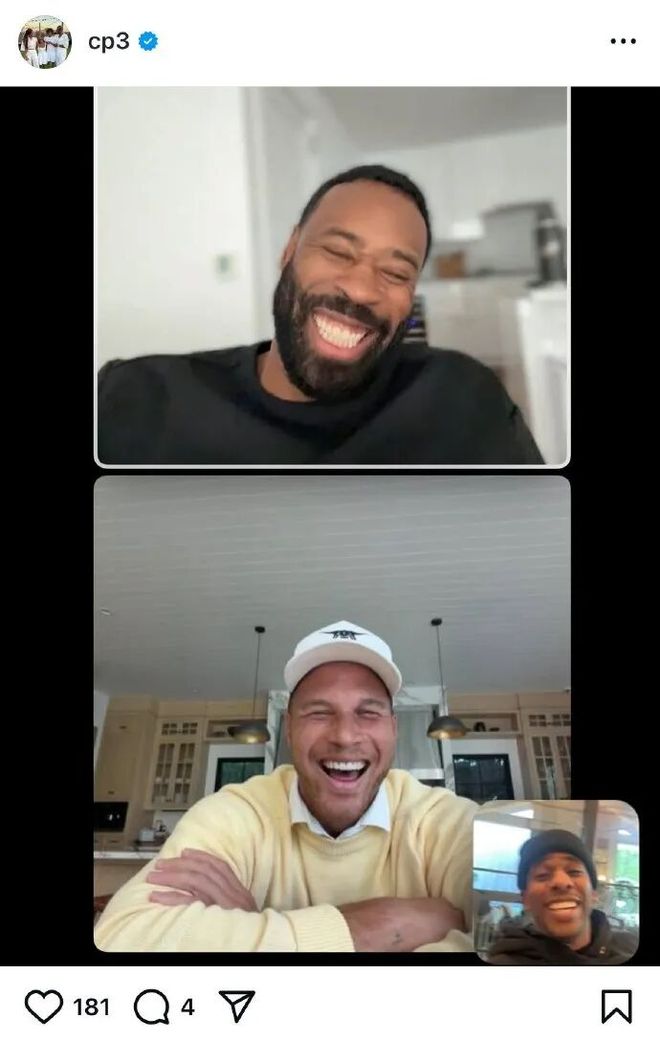 保罗不后悔,甚至还很开心今天他又更新的IG,晒出了和格里芬、小乔丹视频连线的截图。三人都笑得特别开心,没有一点点伤感