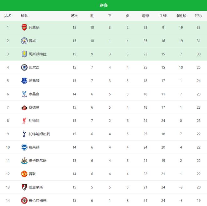 相关阅读:维拉曼城阿森纳利物浦桑德兰队切尔西队英超积分榜