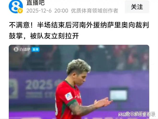 纳萨里奥是一个典型的南美球员,在场上往往是激情四射,这种球员踢球从不会藏。但现在问题变成了,这种劲落到裁判身上,就一定要付出代价了。过去的联赛也有因为鼓掌、表达不满而被罚的先例,所以这次纳萨里奥恐怕也逃不掉了。从俱乐部的角度来讲,他们也挺难办。刚输掉冠军,球队需要调整、需要安抚情绪、需要开始为下个赛季做规划,现在突然出来一个可能停赛的外援,这等于又给教练组和管理层添了一道新的难题。如果处罚真的下来,河南队的前场球员配置必须早做预案。