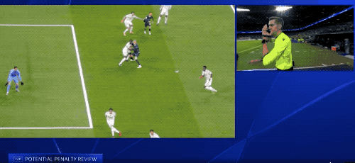 第40分钟,吕迪格在禁区内完全没有必要,直接放倒了哈兰德。VAR介入,裁判判罚点球。