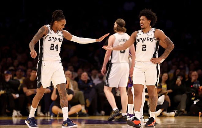 同时球队内部的天赋球员还不够多,球队需要给文班身边配备足够多的天赋球员,所以在这两年,他们相继选中卡斯尔和哈珀两位高顺位球员,为的就是增加球队天赋,培养成文班的得力帮手。如果只是靠着选秀,那么球队可能需要很长的时间才能具备竞争力,所以他们在上赛季中期交易市场和今年休赛期自由球员市场都有动作,在上赛季中期,球队交易得到了国王队全明星后福克斯,而在今年休赛期,马刺又得到了原来帮助勇士队获得总冠军的锋线球员巴恩斯。这两位在巅峰期可都有场均20+的实力。