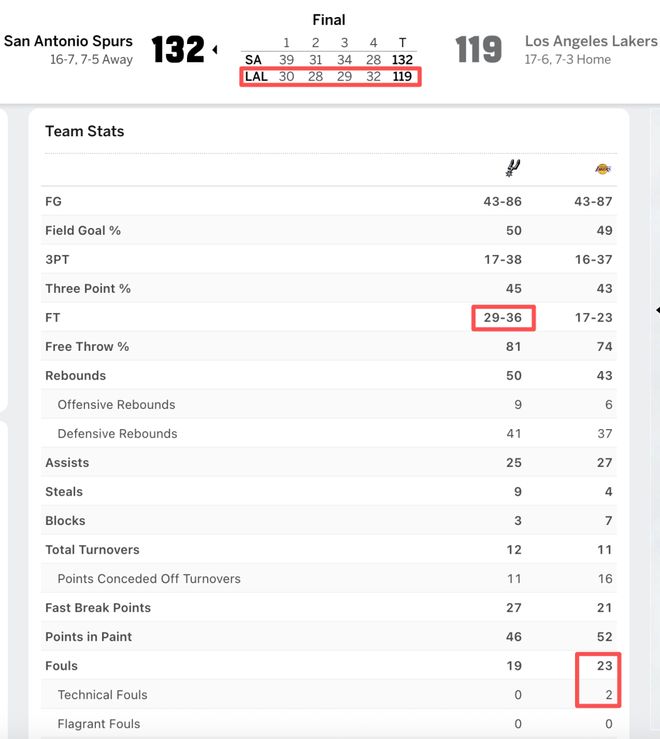 本赛季NBA杯在今天结束了西部的两场1/4决赛较量!最终雷霆和马刺分别战胜各自对手踏上前往拉斯维加斯的征程,争夺一张决赛门票!而相比起雷霆三节结束就领先38分早早便打卡下班,击败湖人的马刺让不少球迷感叹:“青春回来了,马刺又进西决了!” NBA杯起初设立的初衷,就是为了能够让NBA在常规赛初期收视率相对较低的时间段能够有一项锦标吊足球迷胃口。而对于球队而言,联盟也是煞费苦心对NBA杯进行设计,最终设计出将NBA杯比赛胜负(除最后的决赛)纳入常规赛战绩的做法,与此同时设立奖金机制,每名球员从淘汰赛开始的八强至最终冠军将有8万美元至53万美元不等的奖金,因此球队会认真对待从而激励球员,而球迷也看得更加起劲。 而对于马刺和湖人而言,晋级NBA杯半决赛和奖金已是其次,由于比赛结果将计入常规赛,而两队在此役之前仅相差一个胜场(湖人17胜6负西部第二,马刺16胜7负西部第五),在竞争极为激烈的西部,这一场顶两场的比赛是谁都不会放弃的比赛。 比赛开始后,近期状态火热的湖人立刻“对症下药”,由于“外星人”文班亚马无法出战,马刺只能遣上科内特,这让湖人内线艾顿找到了自己的舒适区,他在油漆区内是予取予求,3中3连砍6分。随后,本赛季联盟最擅长打第一节的东契奇接管比赛,外线连中两记三分后拿到11分,带队打停马刺!本赛季场均砍下35分的他已经成为联盟自96-97赛季以来,首节(13.1分)和半场(21.1)得分最高的球员。 可暂停回来之后,场上风云突变!深受中国球迷喜爱的马刺球员“烤鸡”科尔登·约翰逊状态堪称炸裂,个人三分球3中3的同时在5分钟内砍下13分,带队打出一波13-4的高潮同时,帮助马刺以39-30结束第一节。可谁知道,湖人自那之后就再也没有领先过,第二节开始3分钟的得分荒让湖人身处被动,加上马刺加强进攻的侵略性不断冲击篮筐造成犯规走上罚球线和湖人队无谓的犯规越来越多,湖人就此交出了主动权。这样的情况此后成为了全场比赛的主旋律,从技术统计来看,湖人全场比赛多达23次犯规,让马刺在罚球线上拿了28分,这近乎是湖人队一节的得分。 而上半场为数不多能令湖人球迷热血澎湃的,或许只有最后时刻詹姆斯的霸气隔扣了,已经41岁的勒布朗·詹姆斯在自己职业生涯的第23个赛季还能这样扣,落地后的“王之凝视”甚至有让人回想到了2018年的那个“灭霸詹”。 第三节和第四节,马刺都曾将分差拉开到20分以上,但湖人并不会轻易缴械投降,东契奇的硬接能力是湖人的大杀器(全场比赛他砍下35分),而伤愈复出的斯玛特更是在两节比赛命中7记三分全场砍下26分,甚至一度让湖人看到了翻盘的希望,可最终湖人还是败给了马刺的“年轻风暴”。全场比赛,马刺全队一共7人得分上双,上赛季最佳新秀德文·卡斯尔砍下全队最高的30分10篮板6助攻,三项数据均属球队最高!在上赛季被克里斯·保罗特训过后,本赛季卡斯尔各项数据较上赛季还有提升,18.2分6.1篮板和7.3助攻(上赛季14.7分3.7篮板4.1助攻)的数据,令他或许在本赛季拥有冲击最佳进步球员奖项的机会。 赛后,媒体报道一再称赞现如今的这支马刺,更有报道称:“球队的执教理念和团队文化完全传承了老马刺的风骨。”确实,如果您是老马刺球迷,在他们身上真能看到当年帕克、吉诺比利、迪奥、斯普利特和邓肯的影子,也难怪有不少球迷感叹:“泪目啊!马刺又进西决了!这些人真能让你有梦回当年GDP时期马刺的感觉了。” 进入NBA杯半决赛,东西部总共四支球队将前往拉斯维加斯,争夺最终的NBA杯冠军!如果您不知道在哪里能够收看如此精彩的比赛,那小编提醒您关注劲爆体育频道!12月14日和12月17日,让我们一同见证NBA杯冠军的诞生!与此同时,劲爆体育频道还将为您带来精彩的常规赛较量,更能和杨瀚森一同闯荡NBA! 即将到来的NBA杯半决赛,马刺的对手是卫冕冠军俄克拉荷马雷霆,后者本赛季迄今为止仅输掉一场,24胜1负的战绩已经属于联盟T0级别的球队!而在东部半区,纽约尼克斯和奥兰多魔术会师东部决赛,前者高举本赛季东部第二,而魔术则是以防守为主位列东部第四!如果您热爱传统篮球打法,拿着场极致的攻防对决将同样精彩!