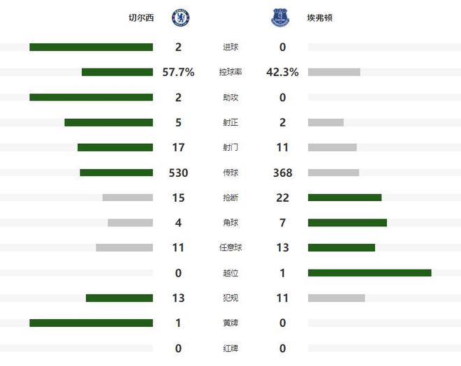 易边再战,恩佐在第47分钟在右路送出精准长传,但后点包抄的加纳乔,又一次浪费了绝佳的破门机会,第55分钟桑切斯后场开大脚,直接给加纳乔创造出了单刀机会,可惜后者依旧把握不住,单刀直接踢偏。比分落后的埃弗顿,并没有放弃逆转的希望,最后半个小时,他们在场面上压制住了切尔西,也创造出了多次有威胁的射门机会,但都没有把握住,只能接受客场被零封的结局。