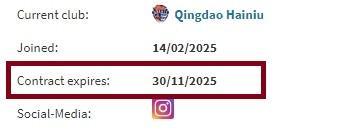 根据此前的报道,青岛海牛与喀麦隆前锋兰克尔-泽最终闹得不欢而散。兰克尔-泽曾在接受采访时透露,明年1月份他将加盟南锡。12月16日,青岛海牛俱乐部官方宣布,外援萨里奇和拉德曼诺瓦茨合同到期离队。12月27日,巴西边锋韦林顿-席尔瓦在社交媒体里发文告别青岛海牛,确定离队。另外,根据德转的数据信息显示,巴西中场菲利佩-奥古斯托与青岛海牛俱乐部的合同已经在今年11月30日到期。
