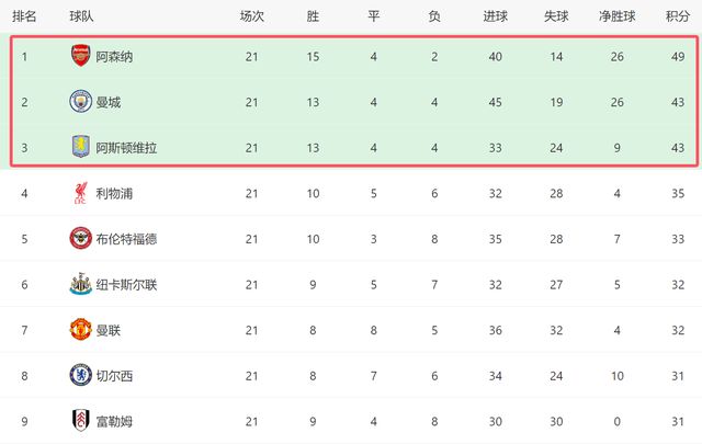 00!英超争冠3强全刹车:阿森纳领先6分,客场不输曼城=夺冠