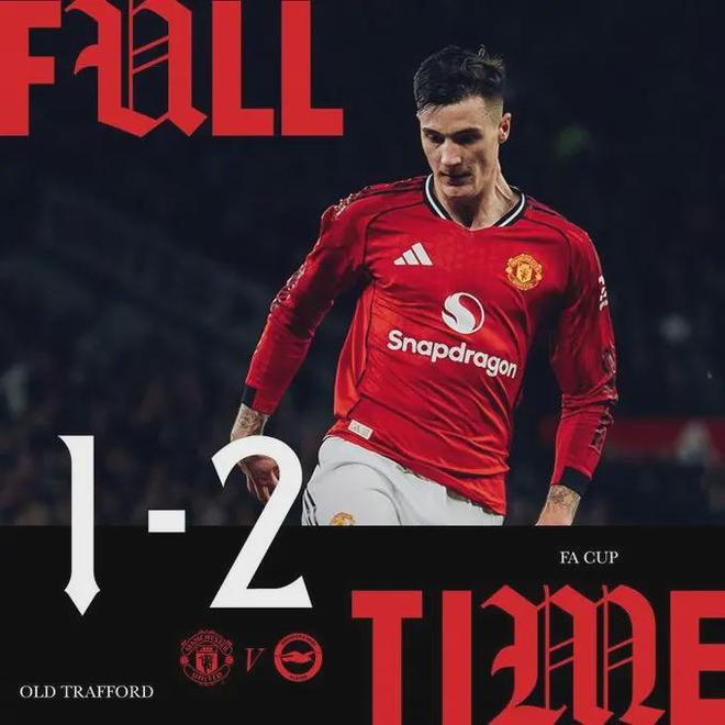 1月12日,足总杯第三轮,曼联1-2不敌布莱顿。这不是一场普通的失利,这是一次耻辱性的“一轮游”。当终场哨响,镜头捕捉到的不是遗憾,而是绝望——18岁的小将莱西在第90分钟因为砸球发泄,两黄变一红被罚下场。