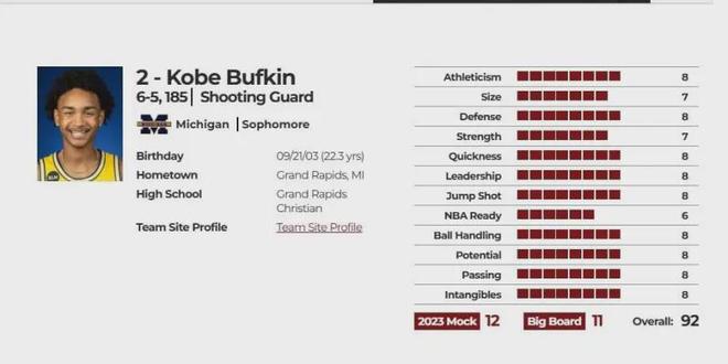 选秀综合评分92分,预计选秀顺位首轮11-12顺位,实际首轮第15顺位,选秀模板乔丹-普尔(这模板就注定其职业生涯充满波折).